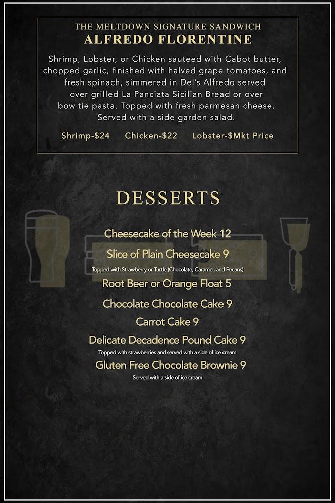 Soups are another highlight, with the French onion being a must-try. Cheese lovers will find joy in the 'Mac & Cheese' section, adding a creamy twist to comfort food. Desserts are delightful, with rotating specials that keep the sweet offerings fresh. With such a versatile menu, The Meltdown truly caters to diverse tastes, ensuring everyone leaves satisfied.